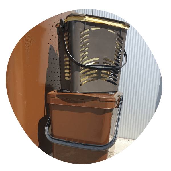 After filling the kitchen basket, close the compostable bag that is in the 10 l kitchen basket and take it out to the brown collection container marked with the label KITCHEN BIODEGRADABLE WASTE.