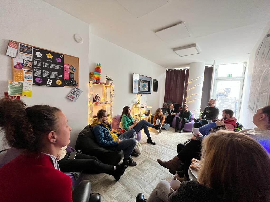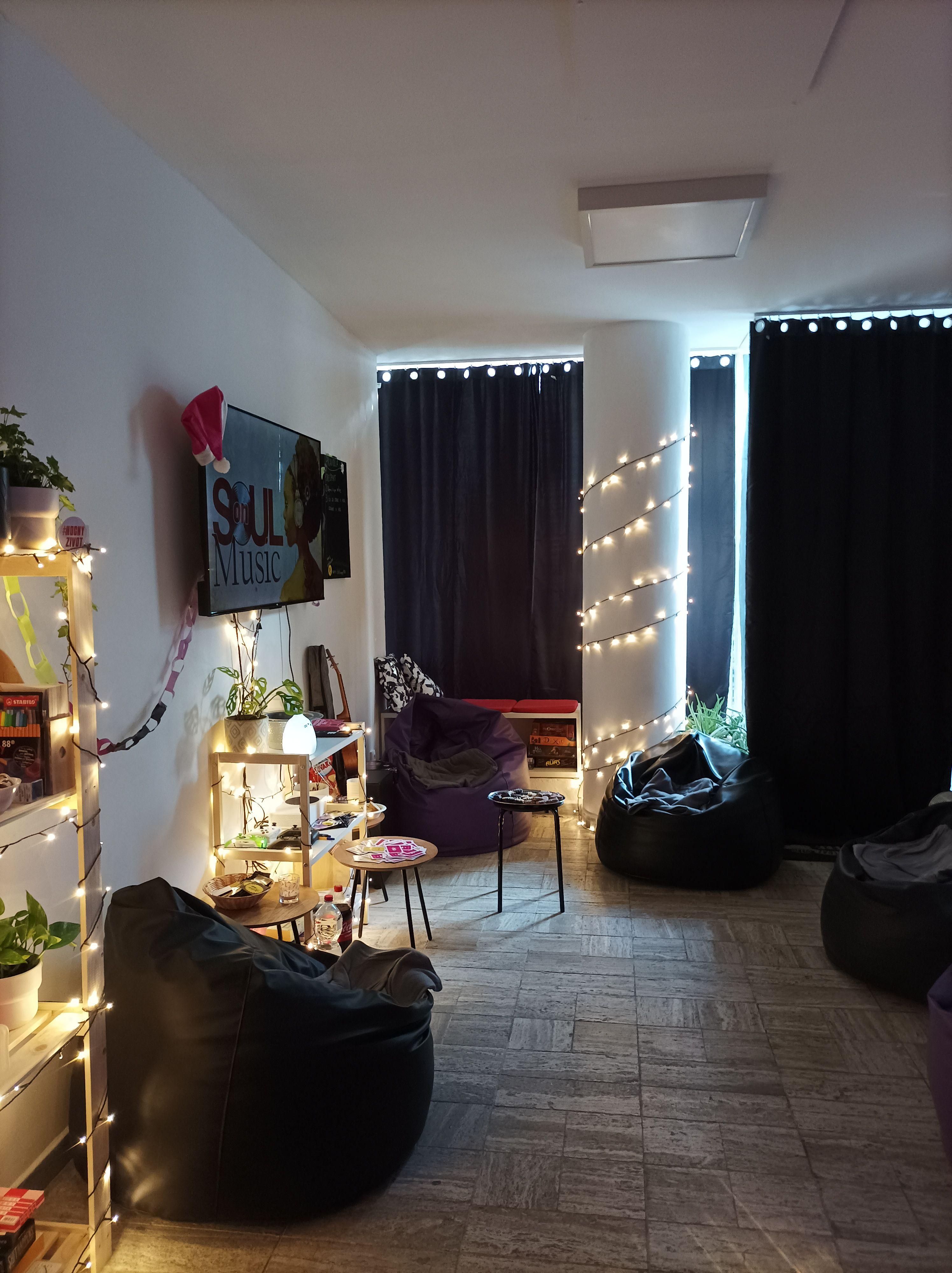 Xbox, spoločenské hry, zelenú stenu, príjemné posedenie pri káve alebo čaji, chill priestor, zaujímavý program, tematické eventy. Organizujeme tiež rôzne komunitné aktivity a výlety - opekačka, výlet do ZOO, vianočná párty atď.